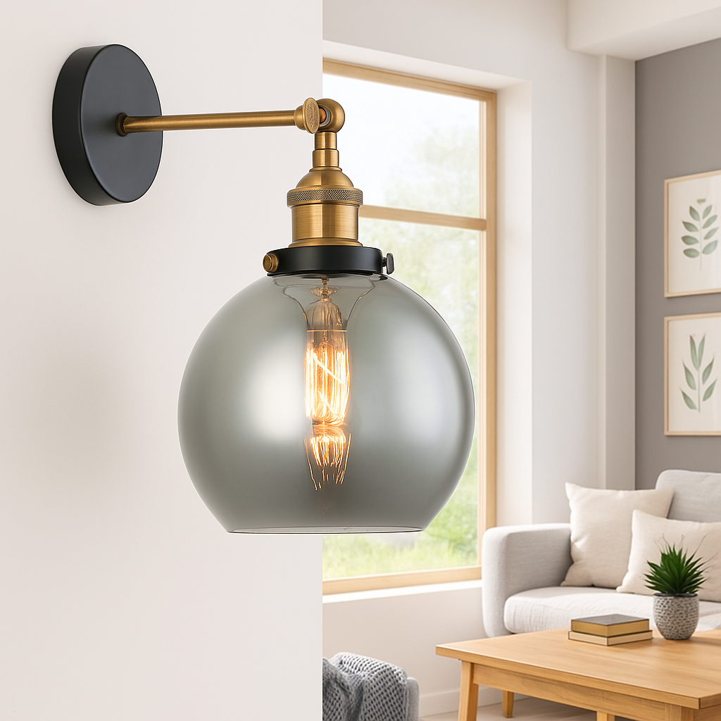 Kinkiet CARDENA od renomowanego producenta Italux to elegancka lampa ścienna, która łączy nowoczesny design z elementami stylu loftowego. Metalowa oprawa w kolorze czarno-złotym doskonale komponuje się z kulistym, szklanym kloszem w kolorze dymnym. Subtelne połączenie matowej czerni ze szczotkowanym złotem dodaje lampie wyjątkowego charakteru, sprawiając, że doskonale wpisuje się zarówno w nowoczesne, jak i industrialne aranżacje wnętrz.