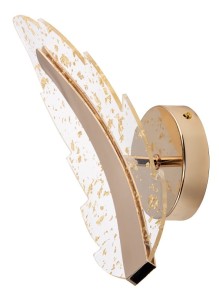 FOGLIA K-F5161-B to wyjątkowy kinkiet LED, który zachwyca oryginalnym designem inspirowanym kształtem liścia. Jego złote wykończenie w połączeniu z transparentnym tworzywem nadaje wnętrzu luksusowego charakteru i delikatnego blasku, doskonale wpisując się w stylistykę glamour.
