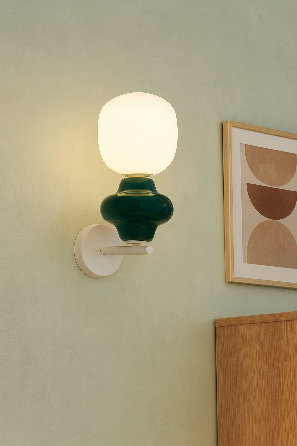Kinkiet LATERA 1xE14 biały zielony Italux WL-94331-1S-GRN to eleganckie oświetlenie ścienne, które łączy funkcjonalność z dekoracyjnym charakterem. Wykonany z wysokiej jakości metalu, ceramiki i szkła, zachwyca estetyką i solidnym wykończeniem. Zamknięty biały klosz w formie kuli zapewnia miękkie, rozproszone światło, tworząc przyjemny nastrój w pomieszczeniu. Pod kloszem umieszczono efektowny, zielony element ceramiczny, który nadaje lampie unikalnego stylu i ożywia aranżację wnętrza.