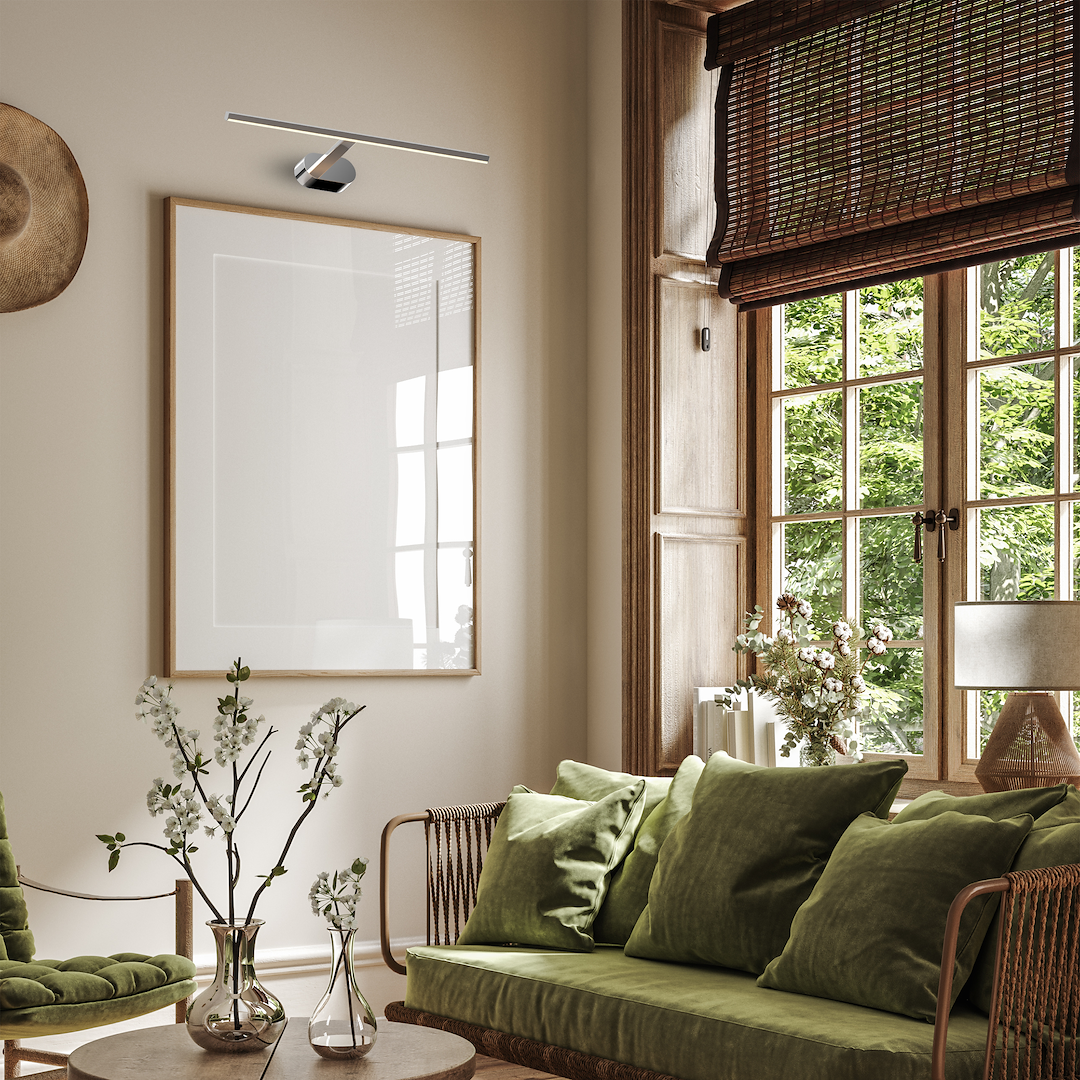 Zintegrowane źródło światła LED o mocy 11W i strumieniu 880 lumenów emituje ciepłą barwę światła 3000K, tworząc przyjemną, relaksującą atmosferę. Szeroki kąt rozproszenia zapewnia równomierne oświetlenie, dzięki czemu kinkiet PRADO doskonale sprawdza się jako lampa nad lustro, oświetlenie obrazów, galeryjka ścienna lub subtelne światło akcentowe.