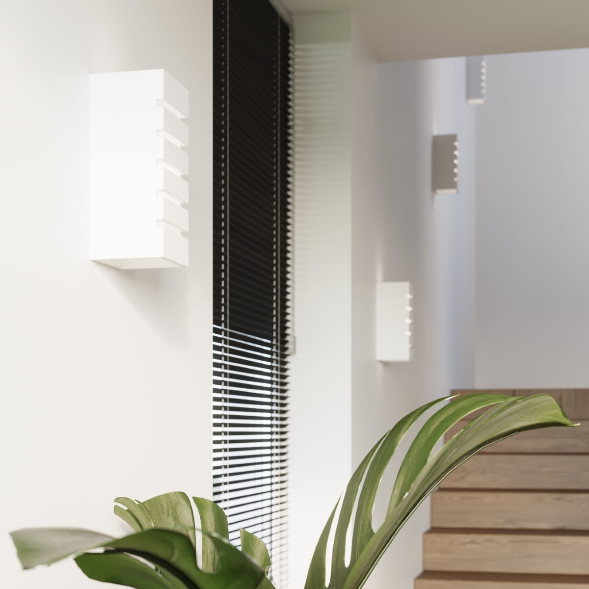 Światło w kinkiecie rozchodzi się górą i dołem, a obudowa z białej, matowej ceramiki w połączeniu z podświetlaną powierzchnią tworzy piękną wizualną kompozycję. Kinkiet świetnie zaprezentuje się w nowoczesnych wnętrzach, zachwycając swoją lekkością i zgrabnym kształtem.