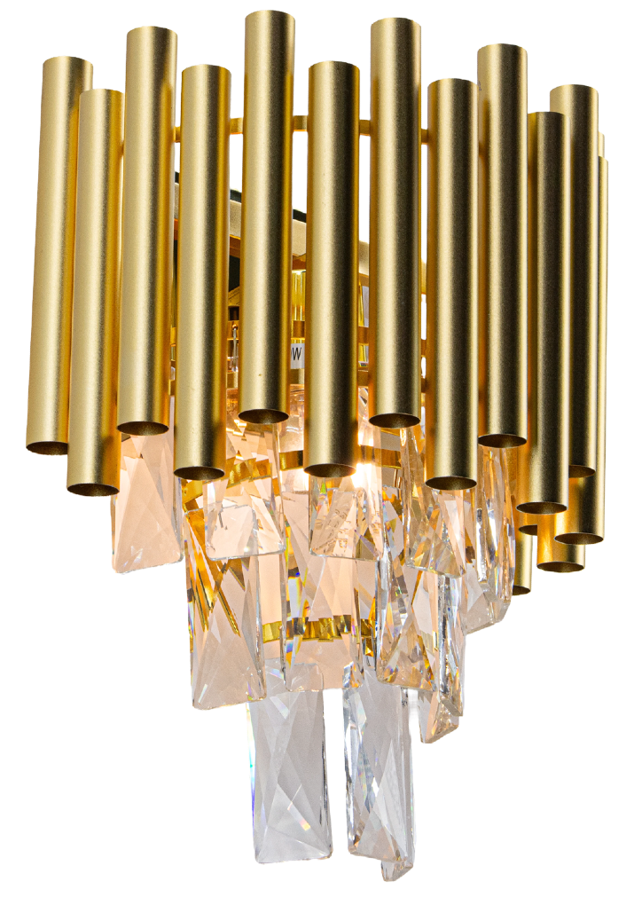 Kinkiet kryształowy BARI 1xE27 złoty Glamour Elem 6230/1 TR to elegancka propozycja, która wprowadzi do Twojego wnętrza luksusowy blask i wyjątkowy charakter. Złota konstrukcja z metalu połączona z transparentnymi, wielowymiarowymi kryształami tworzy efektowną kompozycję, idealną do aranżacji glamour, modern classic i nowoczesnych przestrzeni premium.