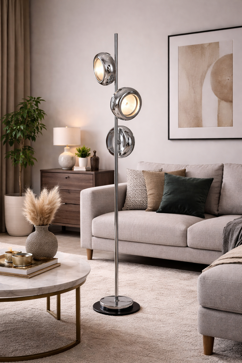 Lampa stojąca MERCURIO to doskonały wybór dla osób, które chcą połączyć nowoczesny wygląd z praktycznym oświetleniem. Sprawdzi się zarówno jako główne, jak i dodatkowe źródło światła, podkreślając charakter wnętrza.