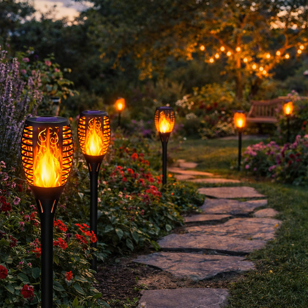 Ta solarna pochodnia to idealny wybór, jeśli chcesz w prosty i efektowny sposób podkreślić aranżację ogrodu czy ścieżek wokół domu — bez kabli, bez kosztów energii i z pięknym efektem świetlnym. Idealna także jako element dekoracyjny do letnich wieczorów na tarasie.