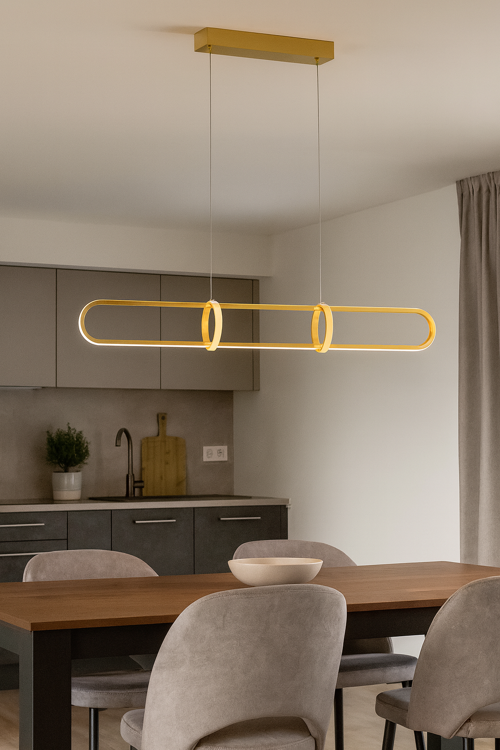 CERRILA 31W LED w złotym kolorze to stylowa propozycja do jadalni, kuchni, salonu czy eleganckiego biura, łącząca nowoczesną technologię z ponadczasowym designem.