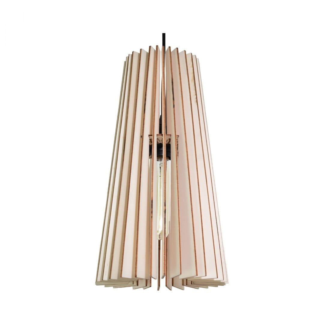 Lampa sufitowa CONE 1xE27 drewniana o średnicy 25 cm to stylowy i nowoczesny element wystroju wnętrza. Jej klosz został wykonany z wysokiej jakości sklejki topolowej o grubości 4 mm, a jasny brązowy kolor dodaje ciepła i naturalnego uroku.