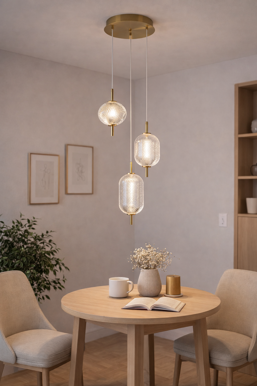 Producent Italux – nowoczesne oświetlenie do każdego wnętrzaLampa sufitowa PADRI 3xG9 złota wisząca do salonu Italux PND-40827-3-HBR-CL