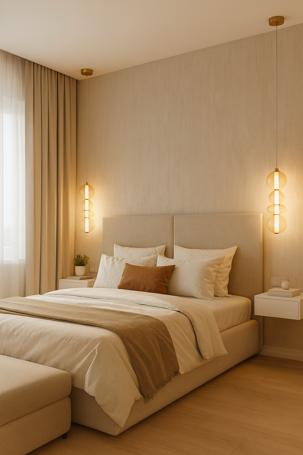 sypialnia – po obu stronach łóżka wprowadzi ciepły, przytulny klimat,