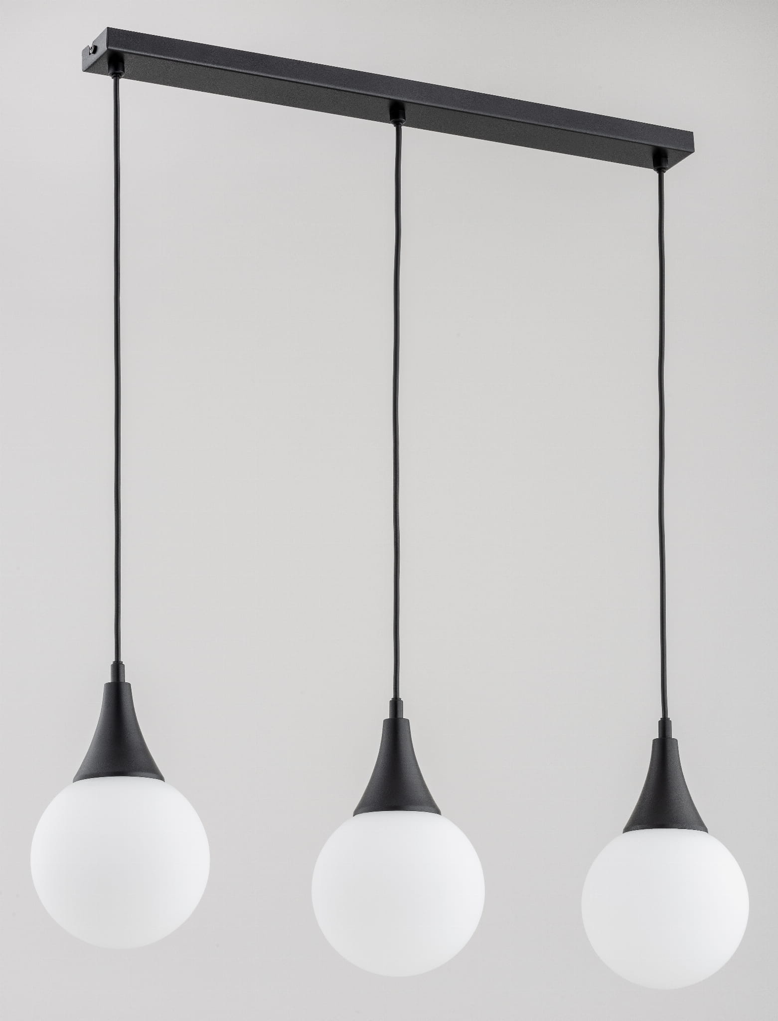 Producent Alfa Sosnowscy – polski producent oświetlenia z tradycjąLampa sufitowa GEMINI 3xE14 czarna białe kule Alfa listwa 62231 kaskada