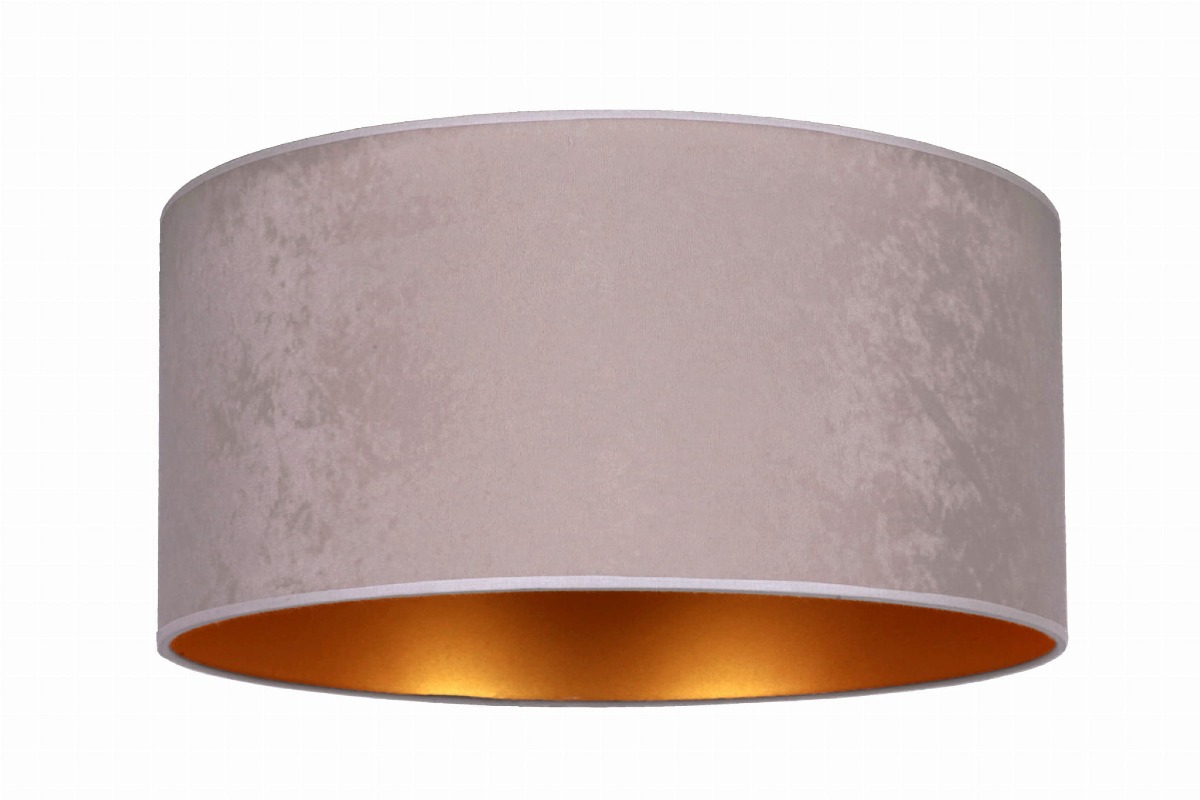 ✔ Stylowy design – zamszowy abażur w szarym odcieniu z eleganckim złotym wnętrzem
