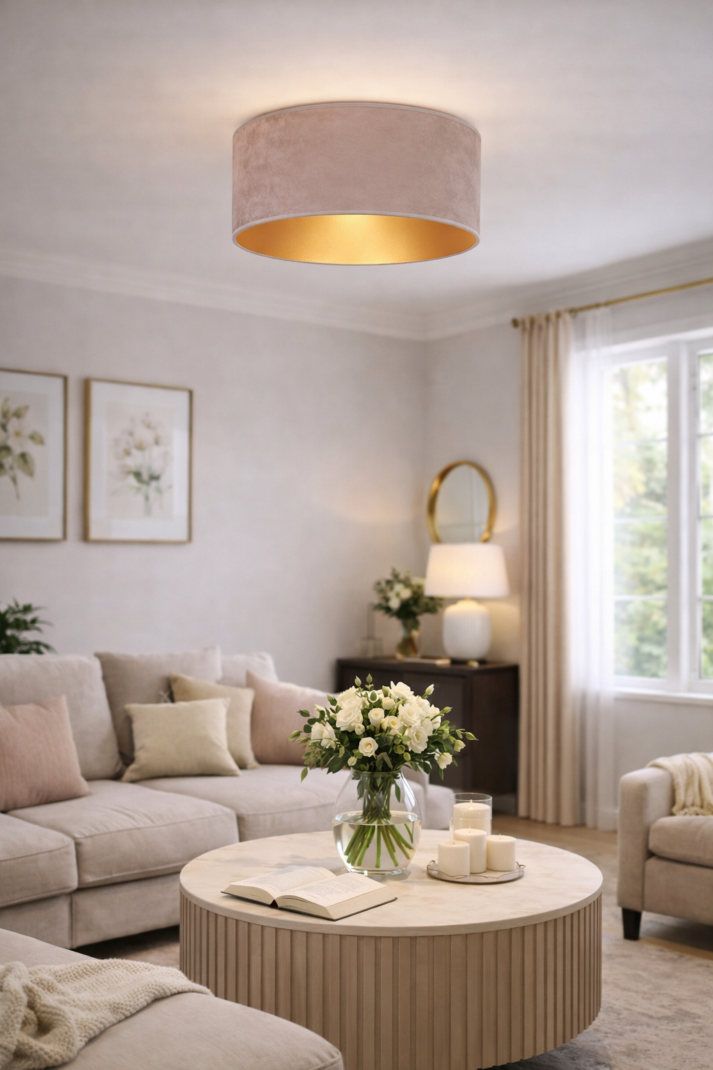Producent DUOLLA – polski producent designerskiego oświetleniaLampa sufitowa GOLDEN 1xE27 różowa abażur zamszowy biała Duolla 83437