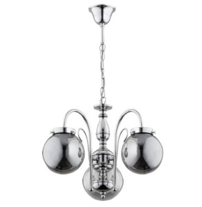Lampa sufitowa HERO 3x40W chrom kule Alfa 28283 żyrandol klasyczny to elegancka propozycja oświetlenia, która łączy ponadczasowy design z nowoczesnym wykończeniem. Chromowana armatura pięknie współgra z kloszami w formie kul wykonanych z dymionego szkła, nadając wnętrzu stylu i wyjątkowego charakteru.