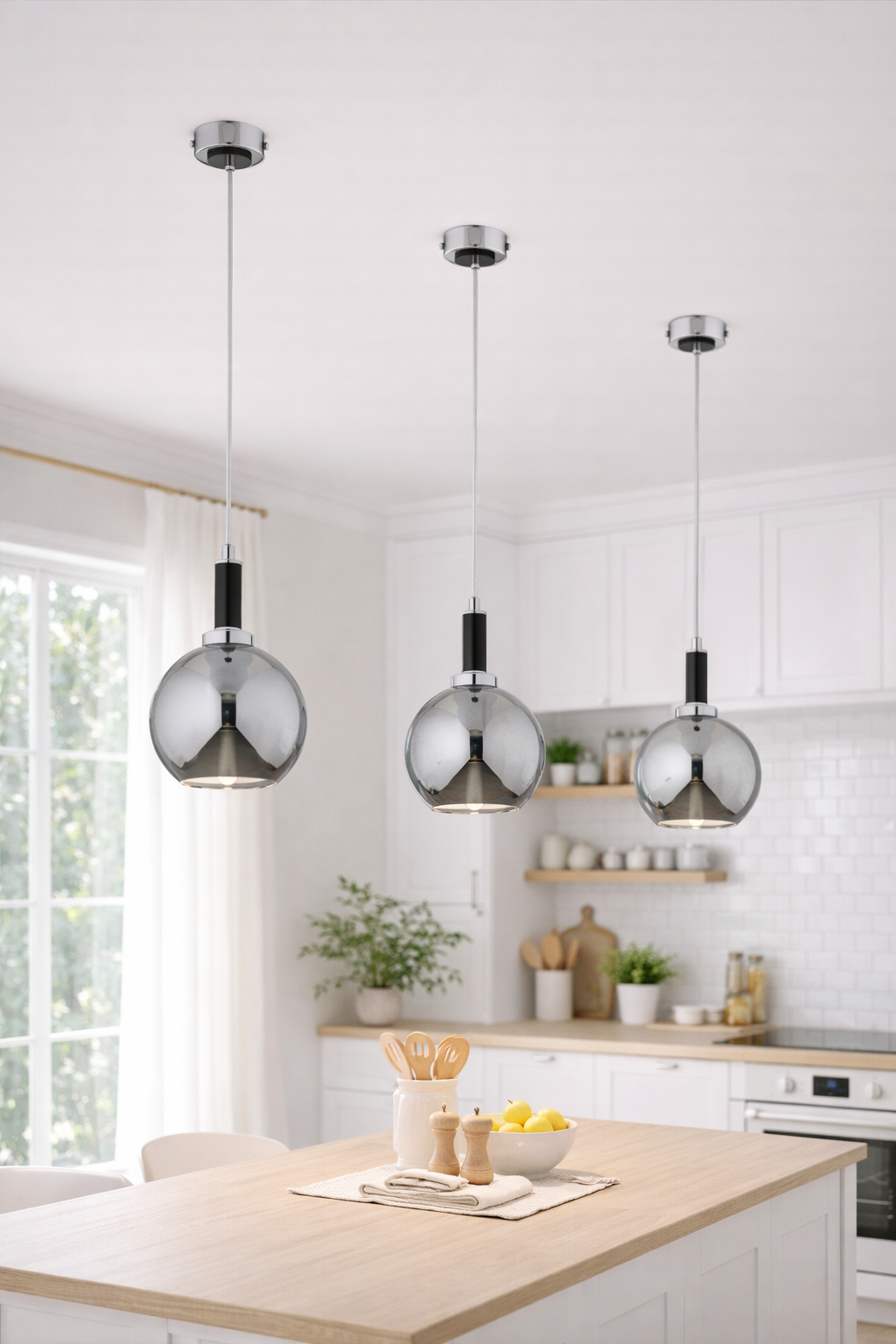 Lampa wisząca kula chrom / szkło przydymione – nowoczesna lampa nad blat i wyspę kuchenną