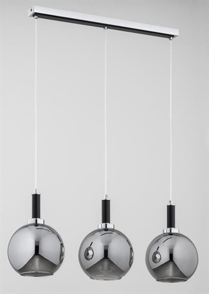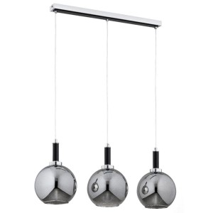Lampa sufitowa HETTY 3xE27 marki Alfa to nowoczesna lampa wisząca na listwie, zaprojektowana z myślą o stylowych kuchniach i jadalniach. Połączenie dymionych szklanych kloszy w formie kul, chromowanych detali, czarnych elementów oraz naturalnego drewna tworzy elegancką, a jednocześnie ciepłą kompozycję.