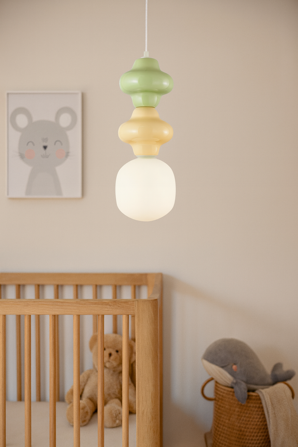 Lampa sufitowa LATERA żółta zielona 1xE14 biały klosz Italux PND-94331B-1S-MLTI