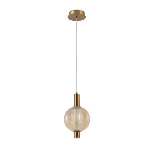 Lampa sufitowa LENTI 1x7W LED złota klosz bursztynowy wisząca Italux PND-83631-1-AB-AMB