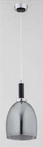 Kolor chrom, dodatki czarne, klosz podwójny - wewnątrz białe, zewnętrzny srebrny