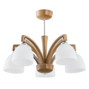 Lampa sufitowa MAGNAT 5xE27 Alfa 21385 drewno brązowa to elegancka i ponadczasowa propozycja oświetleniowa w klasycznym stylu. Połączenie naturalnego jasnego brązu z białymi kloszami tworzy przytulny i stylowy efekt, który doskonale wpasuje się w aranżacje tradycyjne, skandynawskie i nowoczesne.