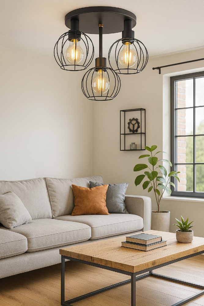 Wyjątkowy loftowo-industrialny design z otwartymi drucianymi kloszami