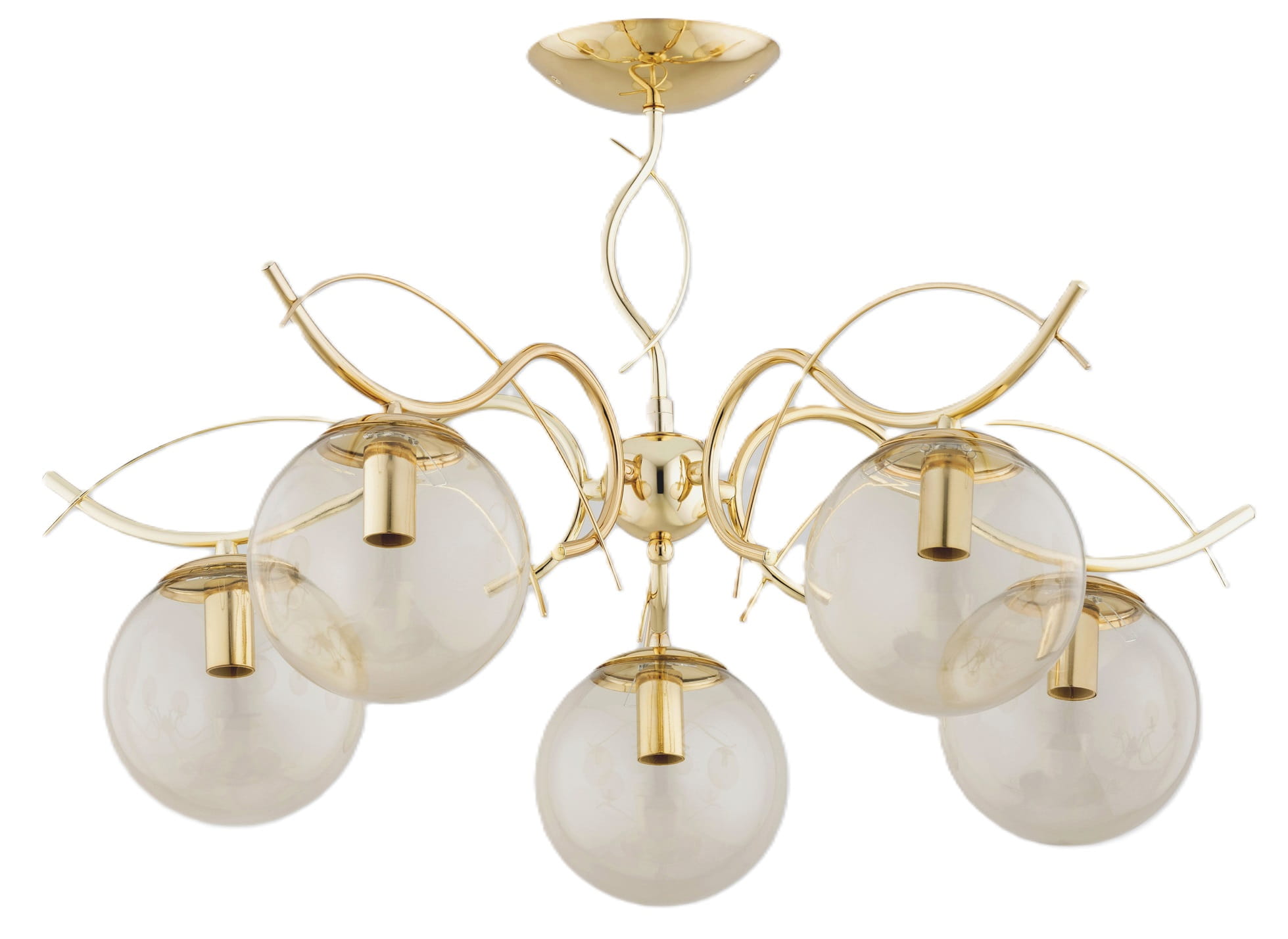 Lampa sufitowa PANDA 5xE14 złota kule bursztynowe Alfa 63210