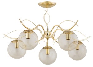 Producent Alfa Sosnowscy – polski producent oświetlenia z tradycjąLampa sufitowa ELITA 5xE14 złota kule bursztynowe Alfa 63209