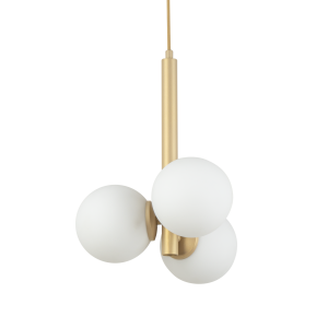 Trzy zamknięte klosze w formie kul o średnicy 12 cm wykonane z białego szkła doskonale rozpraszają światło, tworząc miękki i nastrojowy efekt oświetleniowy. Dzięki temu lampa PERLA wprowadza do pomieszczenia przyjemną atmosferę – idealną do salonu, sypialni, jadalni, gabinetu czy eleganckiego korytarza.