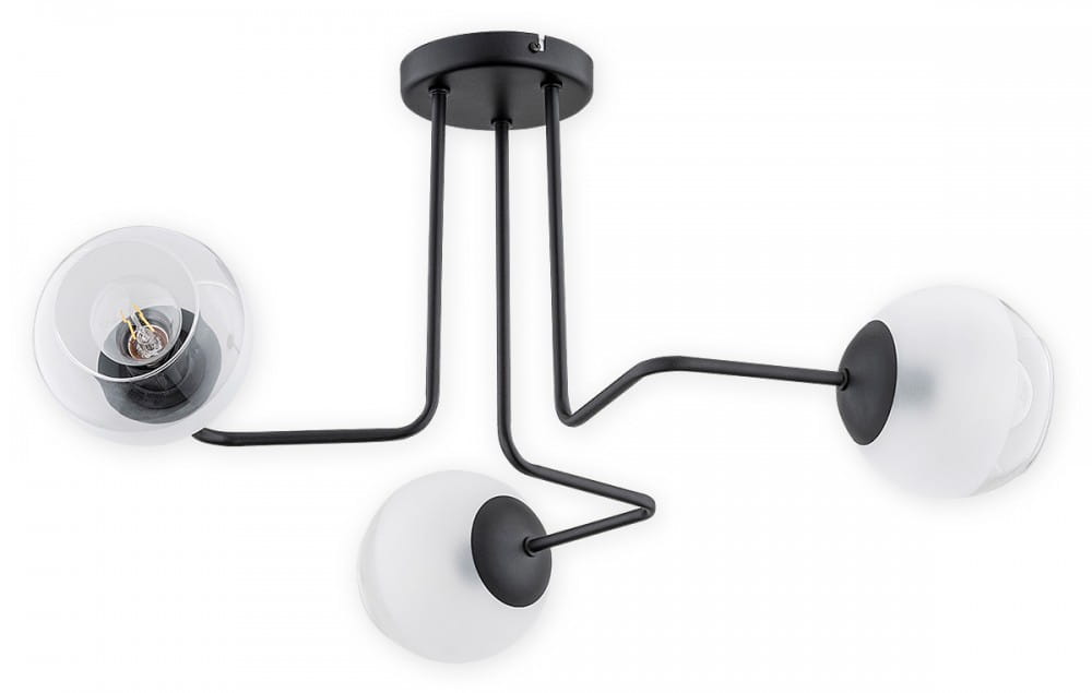 Lampa sufitowa PINOX 3x60W czarna mat białe klosze Lemir O3083 W3 CZA