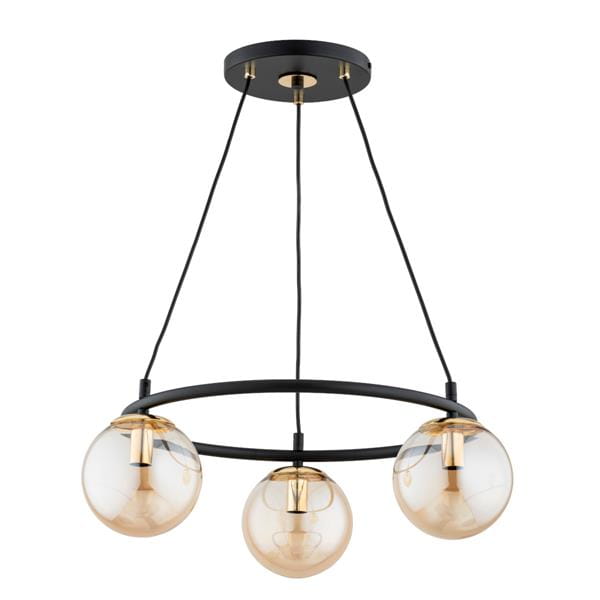 Lampa sufitowa RINGO 3xE14 czarna bursztynowe kule Koło Alfa 62427