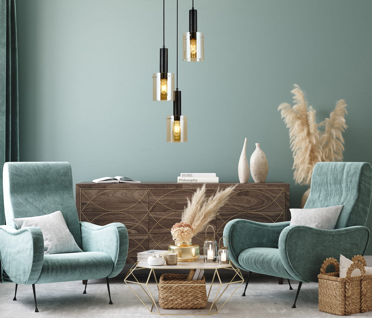 Producent Italux – nowoczesne oświetlenie do każdego wnętrzaLampa sufitowa BUSCO 3xE27 złota bursztynowe klosze talux PND-30263-3A-BRO-AMB