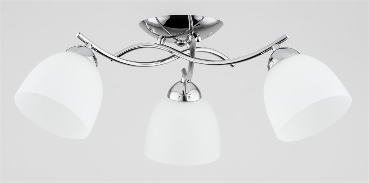 Producent Alfa Sosnowscy – polski producent oświetlenia z tradycjąLampa sufitowa SILIA 3x E27 chrom Alfa 27503 białe klosze