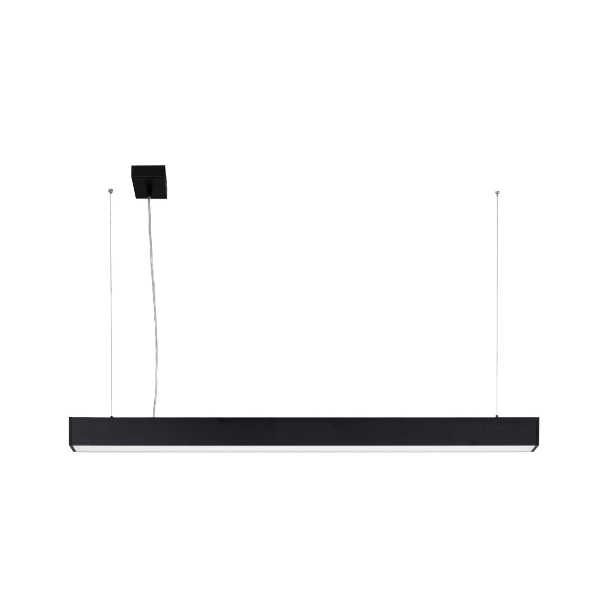 Nowoczesna lampa liniowa wisząca LED o długości 114 cm to profesjonalne rozwiązanie oświetleniowe przeznaczone do biur, przestrzeni komercyjnych oraz magazynowych. Minimalistyczna forma w kolorze czarnego matu doskonale wpisuje się w nowoczesne i techniczne aranżacje wnętrz, zapewniając jednocześnie wysoką funkcjonalność i komfort pracy.