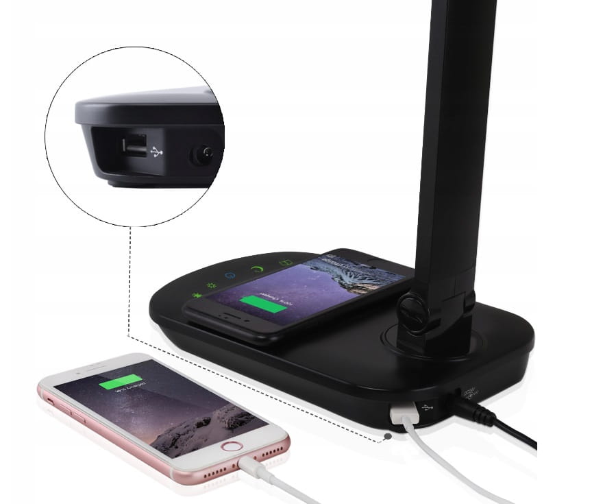 Lampka biurkowa czarna 8W ładowarka USB dotykowa 2700K 6500K