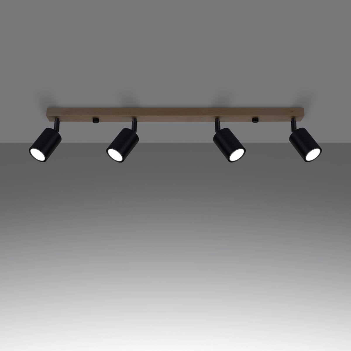 Plafon VERDO 4xGU10 czarny drewno wood Sollux