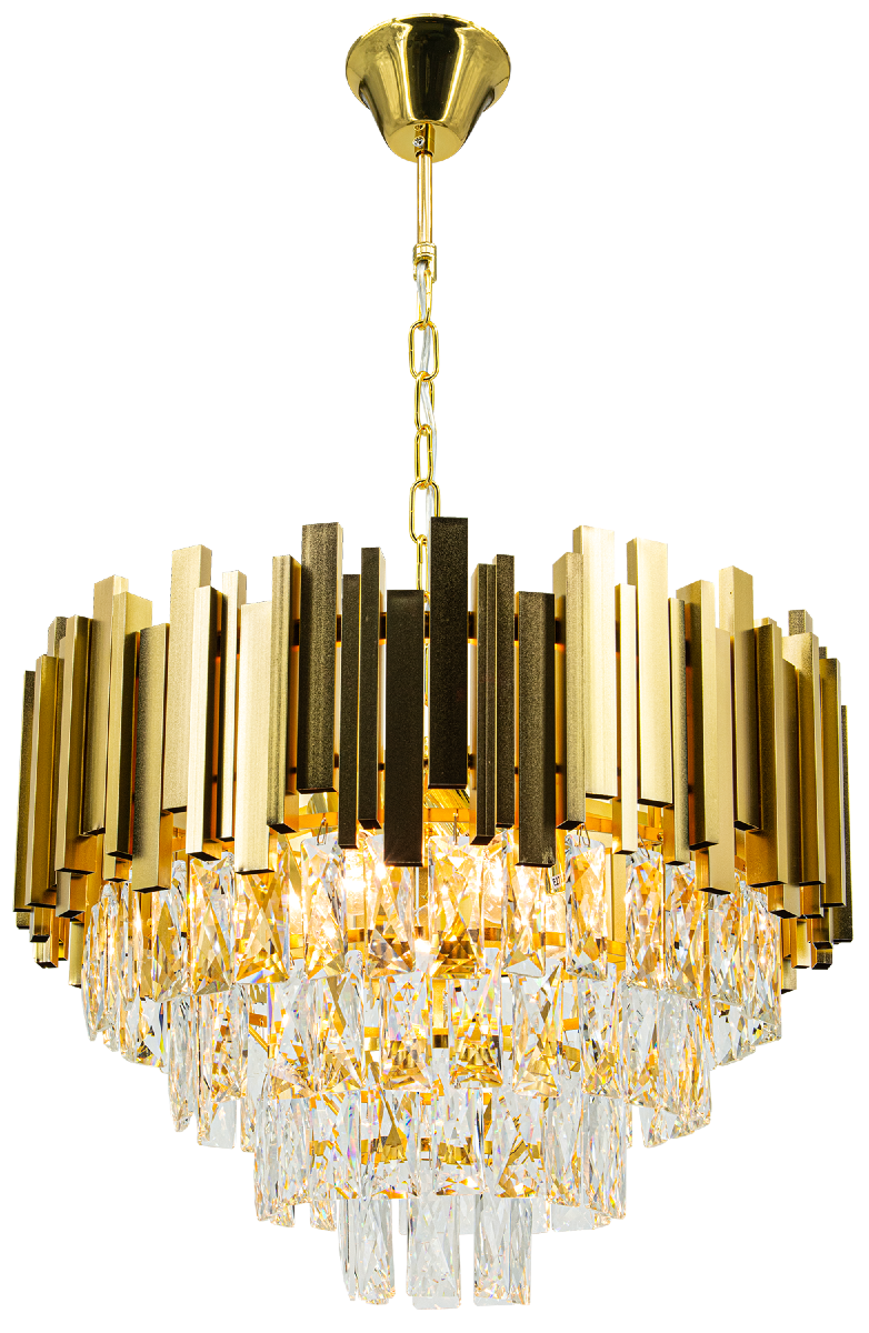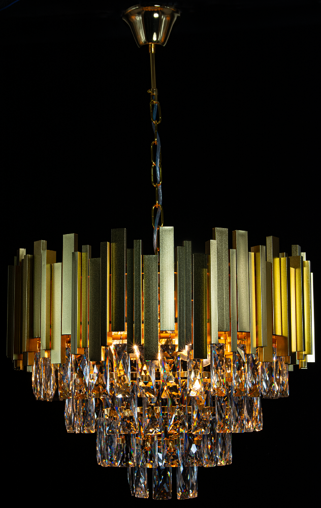 Żyrandol kryształowy VALETTA 5xE27 złoty Glamour 6268/5 TR to luksusowa propozycja oświetleniowa, która wprowadza do wnętrza blask, elegancję i wyjątkowy charakter. Wykonany z wysokiej jakości metalu w szlachetnym złotym kolorze z ciemnymi akcentami oraz ozdobiony licznymi przezroczystymi kryształami, zachwyca wyrafinowanym stylem glamour. Starannie szlifowane kryształy efektownie rozpraszają światło, tworząc na ścianach i suficie spektakularną grę refleksów, która podkreśla prestiż i wyjątkowość pomieszczenia.
